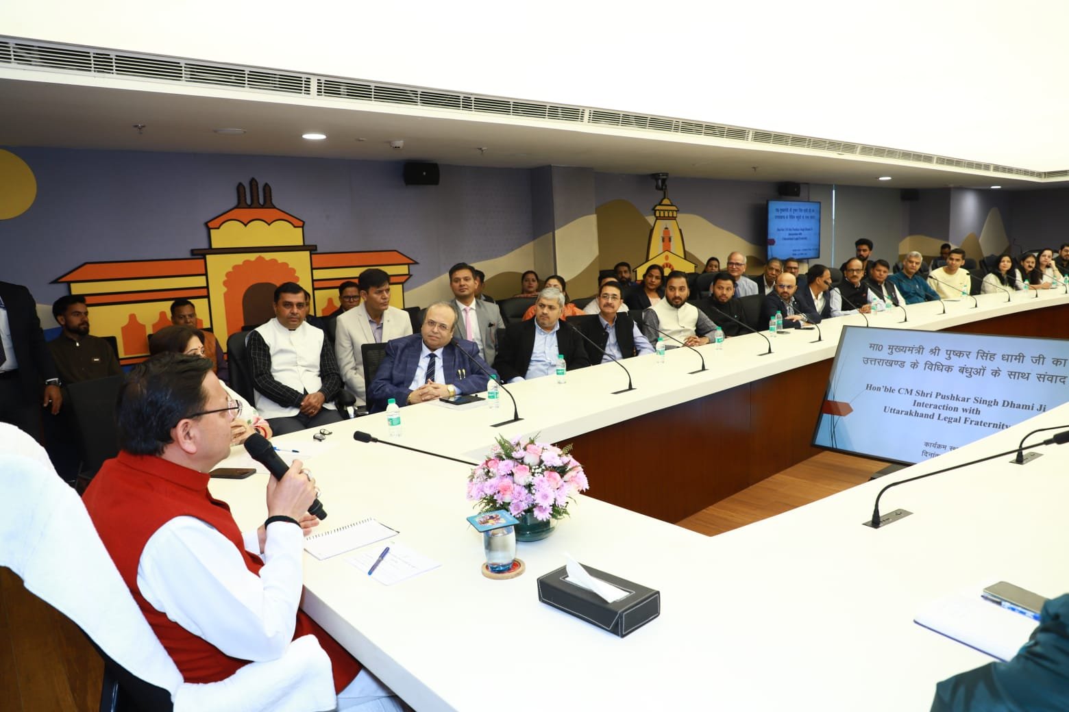 नई दिल्ली स्थित उत्तराखण्ड निवास में उत्तराखण्ड राज्य की रजत जयंती के अवसर पर आयोजित कार्यक्रम में मुख्यमंत्री पुष्कर सिंह धामी ने प्रवासी उत्तराखण्डी अधिवक्ताओं के साथ संवाद किया। मुख्यमंत्री ने अधिवक्ताओं के साथ राज्य की विकास यात्रा, कानून व्यवस्था में सुधार, सुशासन और भविष्य की नीति दिशा पर विस्तृत चर्चा की। कार्यक्रम में बड़ी संख्या में वरिष्ठ अधिवक्ता और कानूनी विशेषज्ञ शामिल हुए।